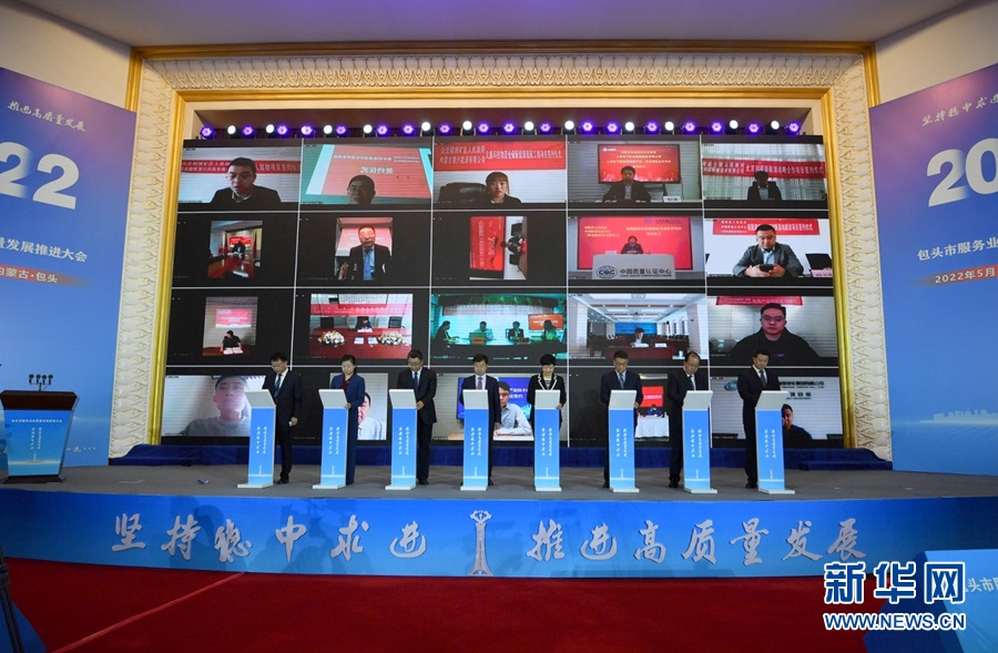 5月10日,包頭市服務業(yè)高質(zhì)量發(fā)展推進大會網(wǎng)絡簽約儀式。新華網(wǎng)發(fā)(安吉斯 攝)