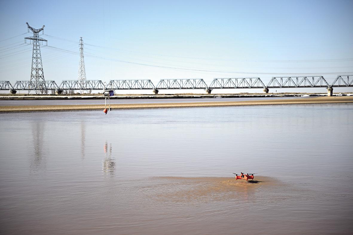 近日,隨著氣溫回升,黃河內(nèi)蒙古段多處已進(jìn)入開河期,有關(guān)部門有序開展防凌工作,確保黃河內(nèi)蒙古段全線穩(wěn)定開河。圖為3月17日在內(nèi)蒙古包頭市黃河水利委員會(huì)寧蒙水文水資源局包頭水文站拍攝的測(cè)深測(cè)速兩棲無人機(jī)。