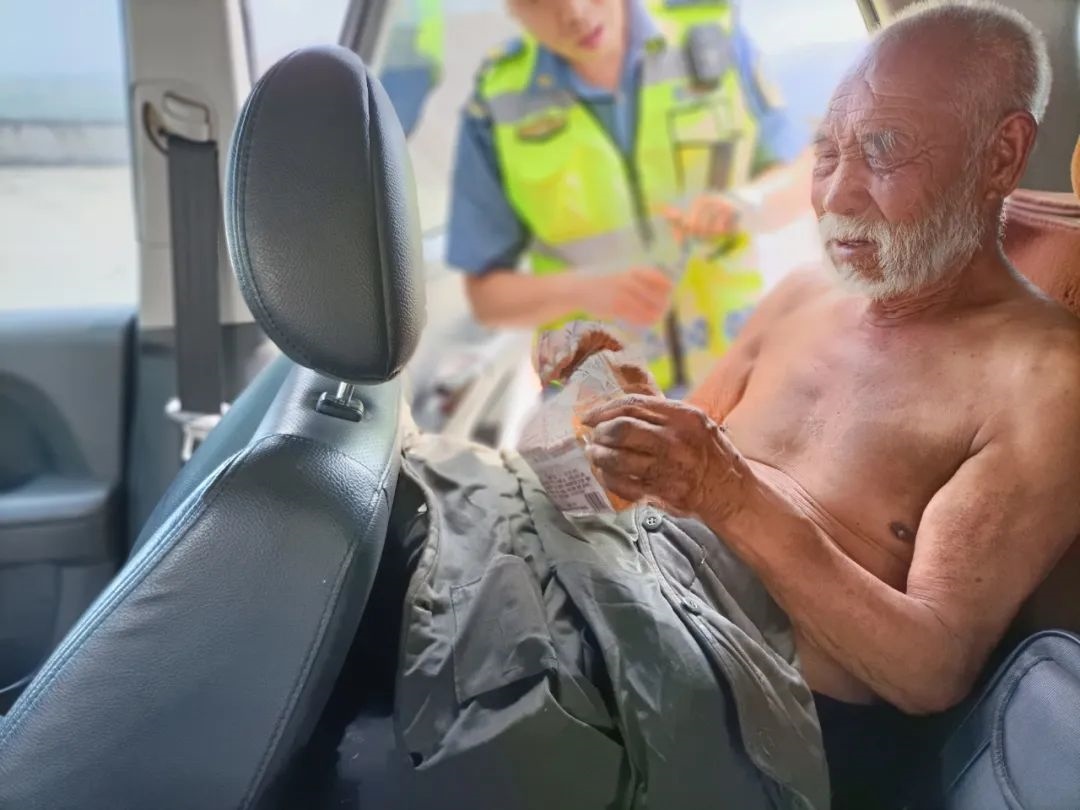 7月27日10時10分許,內(nèi)蒙古自治區(qū)公路路政執(zhí)法監(jiān)察總隊呼和浩特支隊第三大隊的李超和張鵬飛在呼北高速公路巡查過程中,發(fā)現(xiàn)一位老人光著膀子獨(dú)自走在高速公路中間,快速行駛的車輛不時從老人身邊呼嘯而過,稍有不慎就可能引發(fā)重大道路交通事故。