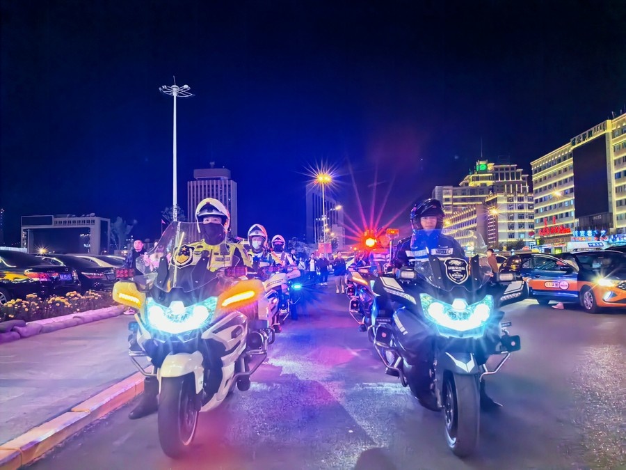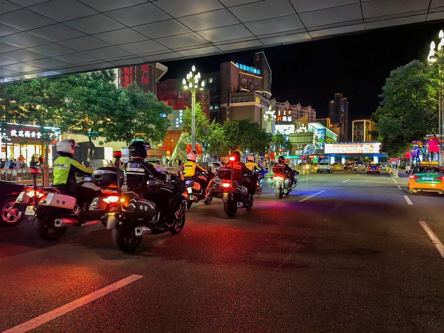 中秋、國慶兩節(jié)期間,呼和浩特市公安局反恐怖和特巡警支隊戰(zhàn)鷹突擊隊與交警支隊停放管理大隊鐵騎中隊,聯合開展巡邏防控工作,并組成了一支騎警處突機動隊,成了呼和浩特大街小巷一道亮麗的風景線。圖為中秋節(jié)之夜,這支機動隊開展聯合巡邏,守護青城百姓平安過節(jié)。 王鑫 攝影報道