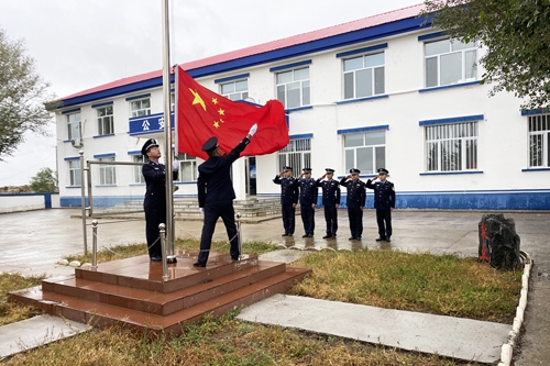9月18日上午,內(nèi)蒙古塔日根諾爾邊境派出所舉辦升國(guó)旗儀式,紀(jì)念“九一八”事件89周年。