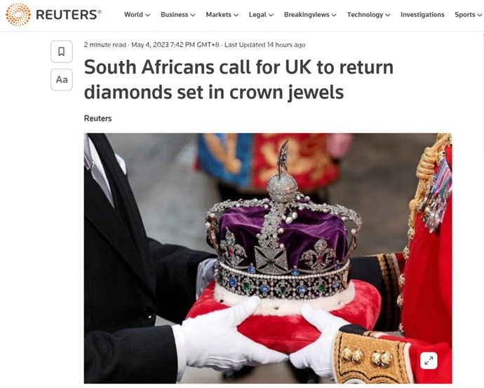 ·查爾斯三世加冕禮前夕,南非人要求英國歸還皇室權杖上的“非洲之星”。