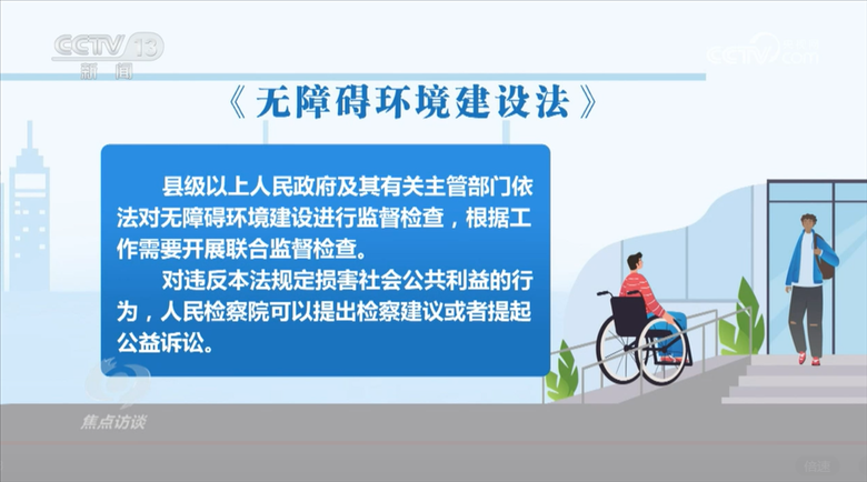 央視網(wǎng)消息(焦點(diǎn)訪談):2023年9月1日,又有一部新法——《中華人民共和國(guó)無(wú)障礙環(huán)境建設(shè)法》正式施行,這是我國(guó)第一部關(guān)于無(wú)障礙環(huán)境建設(shè)的專門(mén)性法律。無(wú)障礙環(huán)境建設(shè)是社會(huì)文明程度的體現(xiàn),尤其和殘疾人、老年人的生活息息相關(guān),它涵蓋的不僅僅是盲道、出入建筑物的通道等各種無(wú)障礙設(shè)施的建設(shè),也包括了無(wú)障礙社會(huì)服務(wù)、無(wú)障礙信息交流等等。那么目前我國(guó)的無(wú)障礙環(huán)境建設(shè),急需要解決哪些問(wèn)題?新法作出了哪些規(guī)定,將從哪些方面來(lái)推動(dòng)無(wú)障礙環(huán)境建設(shè)呢??