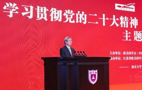 惠建林代表中共江蘇省委表示,要深入學習貫徹習近平總書記關于做好新時代黨的統(tǒng)一戰(zhàn)線工作的重要思想,一如既往重視和加強歐美同學會組織建設,強化留學人員思想政治引領,引導全省廣大留學人員學深悟透黨的二十大精神,堅定不移聽黨話跟黨走,自覺做“兩個確立”的堅定信仰者和“兩個維護”的忠實踐行者,把愛國之情、強國之志、報國之行融入到新時代新征程的偉大奮斗中,為全面推進中國式現(xiàn)代化江蘇新實踐,更好扛起新使命、譜寫新篇章匯聚磅礴力量。