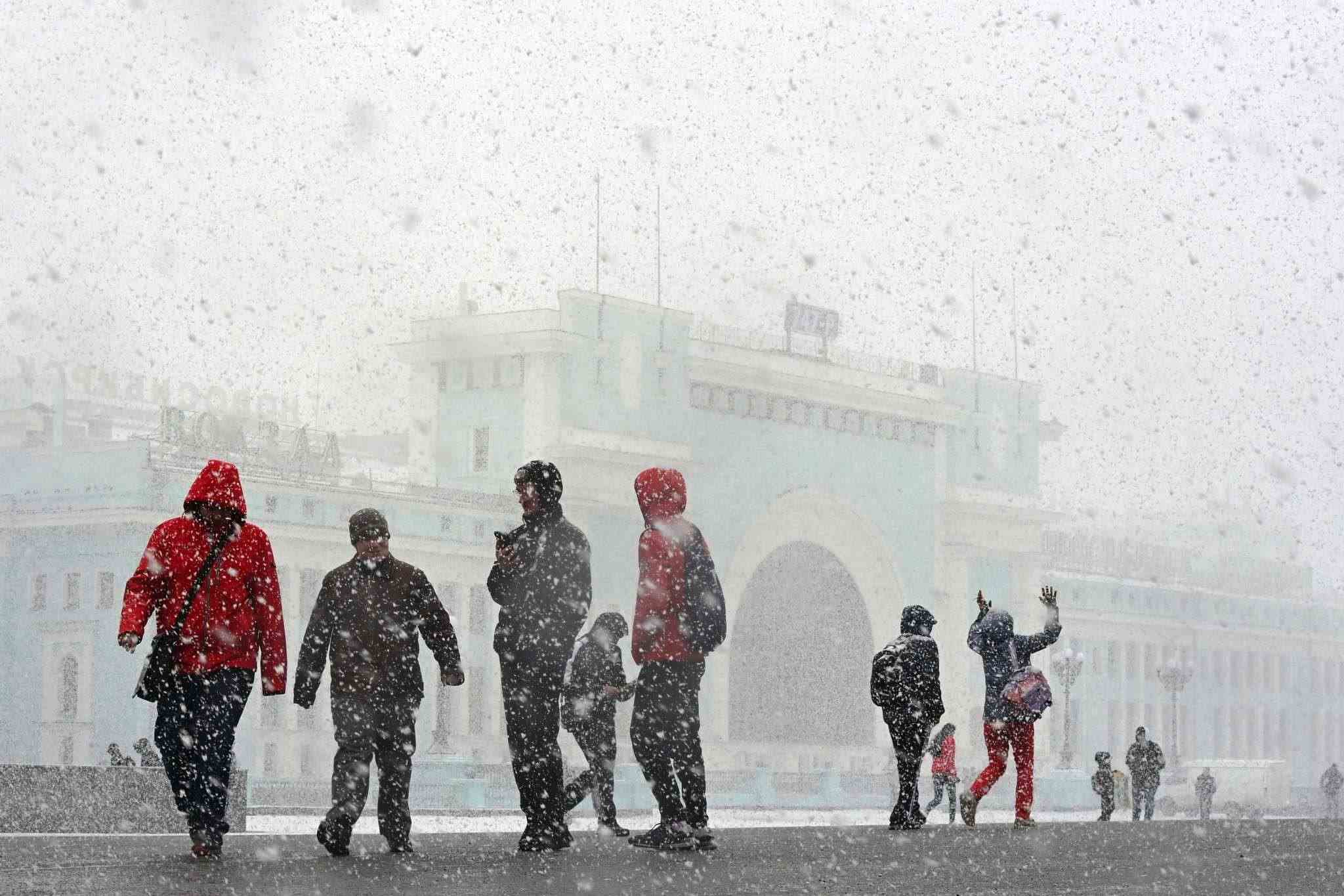 當?shù)貢r間2023年4月14日,俄羅斯新西伯利亞,街道被雪覆蓋。視覺中國