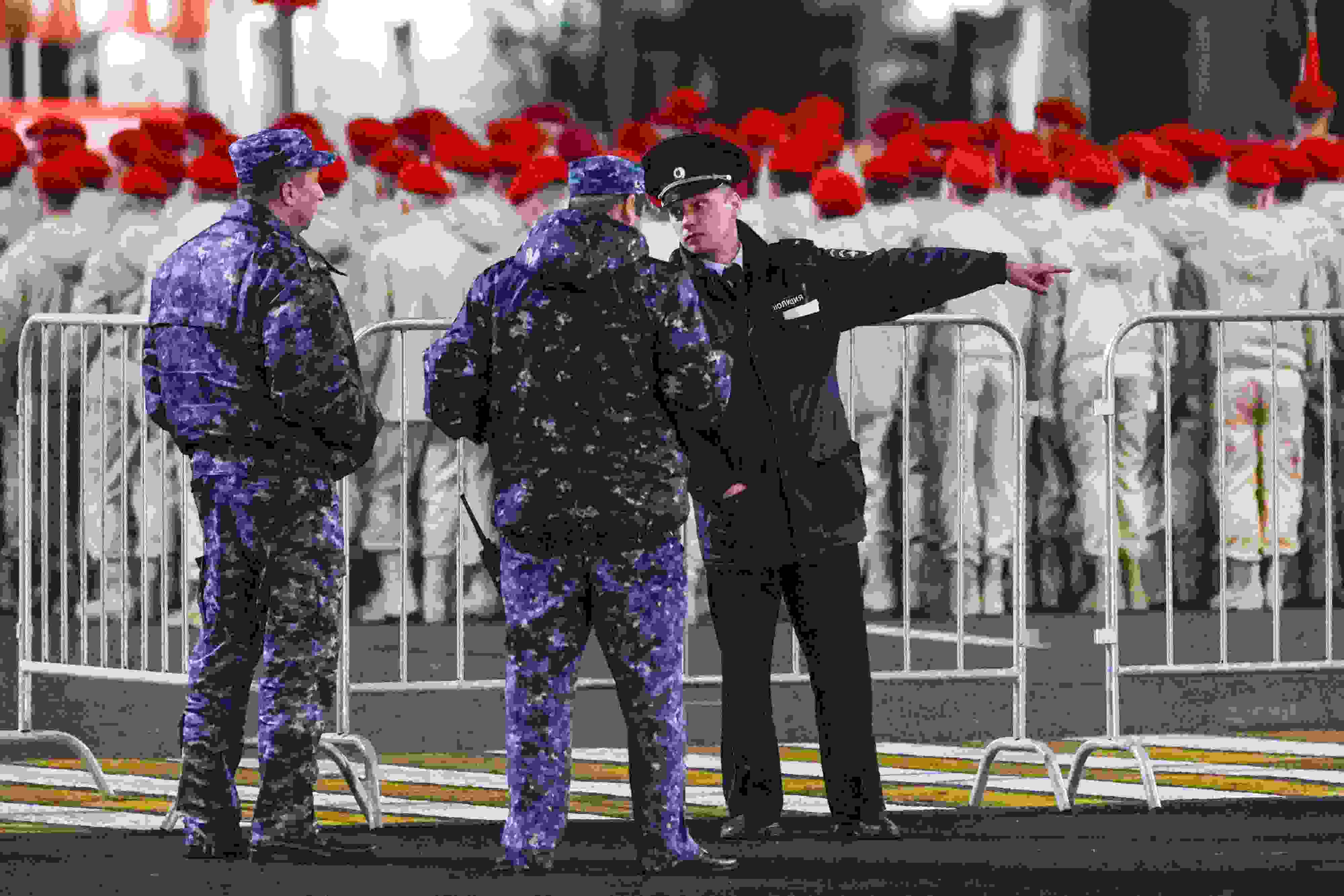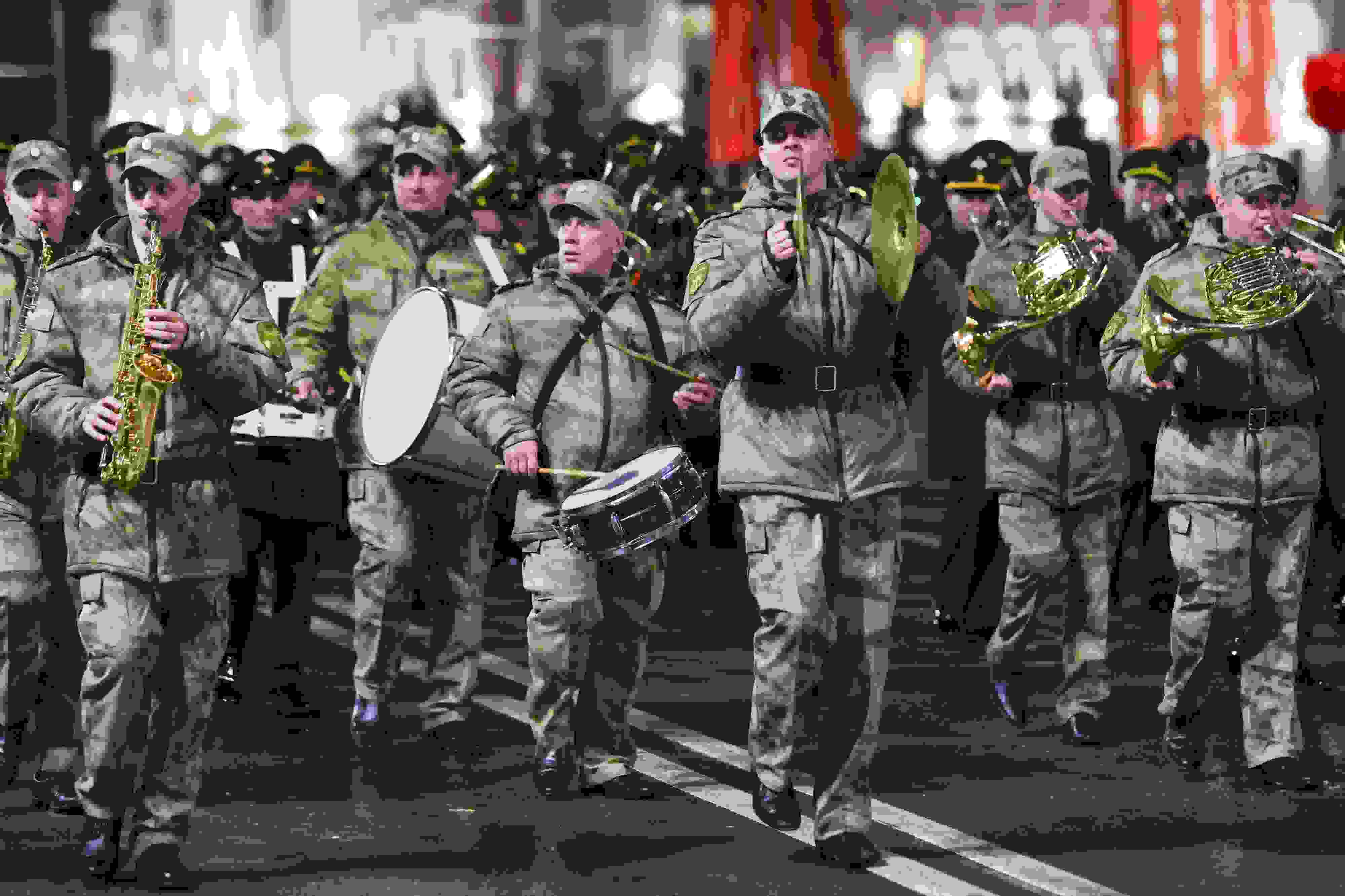 當?shù)貢r間2023年5月2日,俄羅斯頓河畔羅斯托夫,士兵們參加勝利日閱兵彩排。 視覺中國