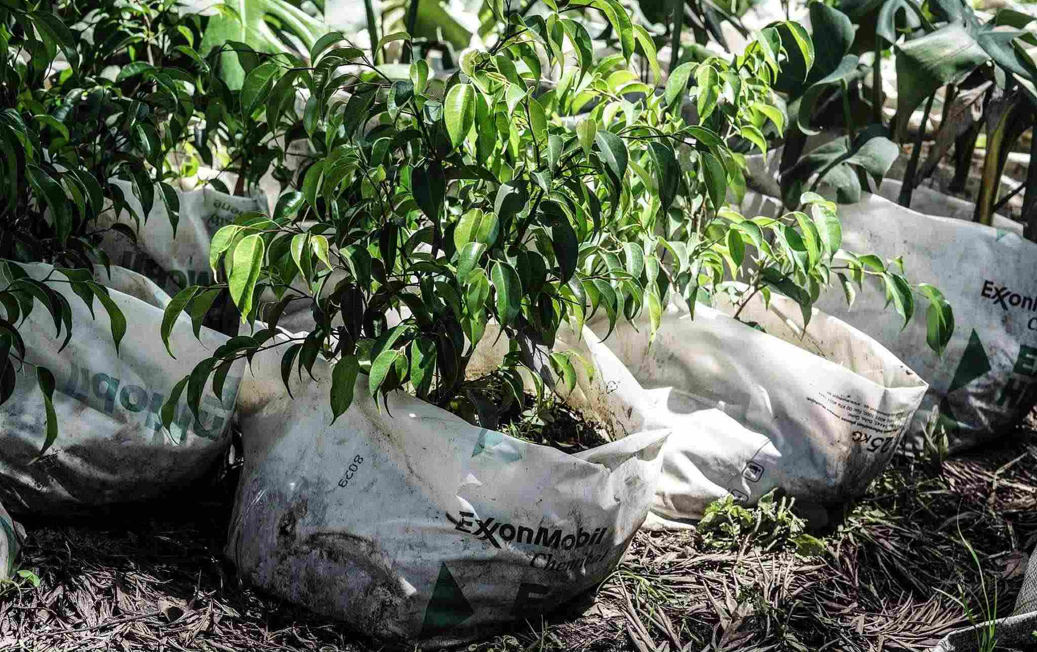 當(dāng)?shù)貢r(shí)間2023年5月7日,肯尼亞納庫(kù)魯?shù)拿缙岳?,??松梨诎b袋包裹著一棵樹(shù)苗。隨著世界充斥著塑料廢物,政府間談判委員會(huì)(INC)內(nèi)塑料條約的支持者正在倡導(dǎo)一項(xiàng)具有法律約束力的文書(shū),減少石化工業(yè)生產(chǎn)的原生塑料。