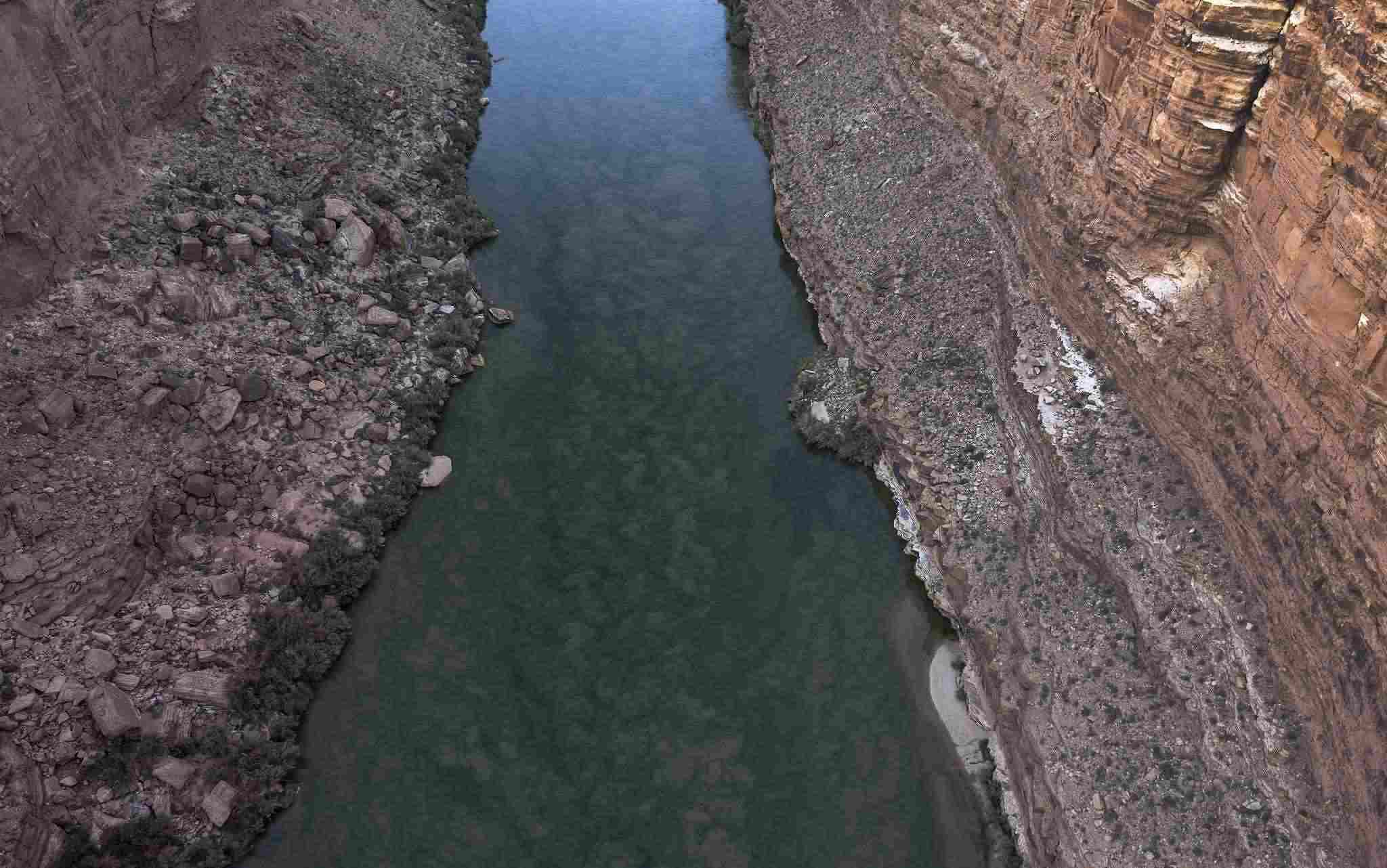 當(dāng)?shù)貢r(shí)間2022年8月31日,美國(guó)亞利桑那州,鮑威爾湖下游的科羅拉多河通過(guò)大理石峽谷時(shí),沉積物被攪動(dòng)。