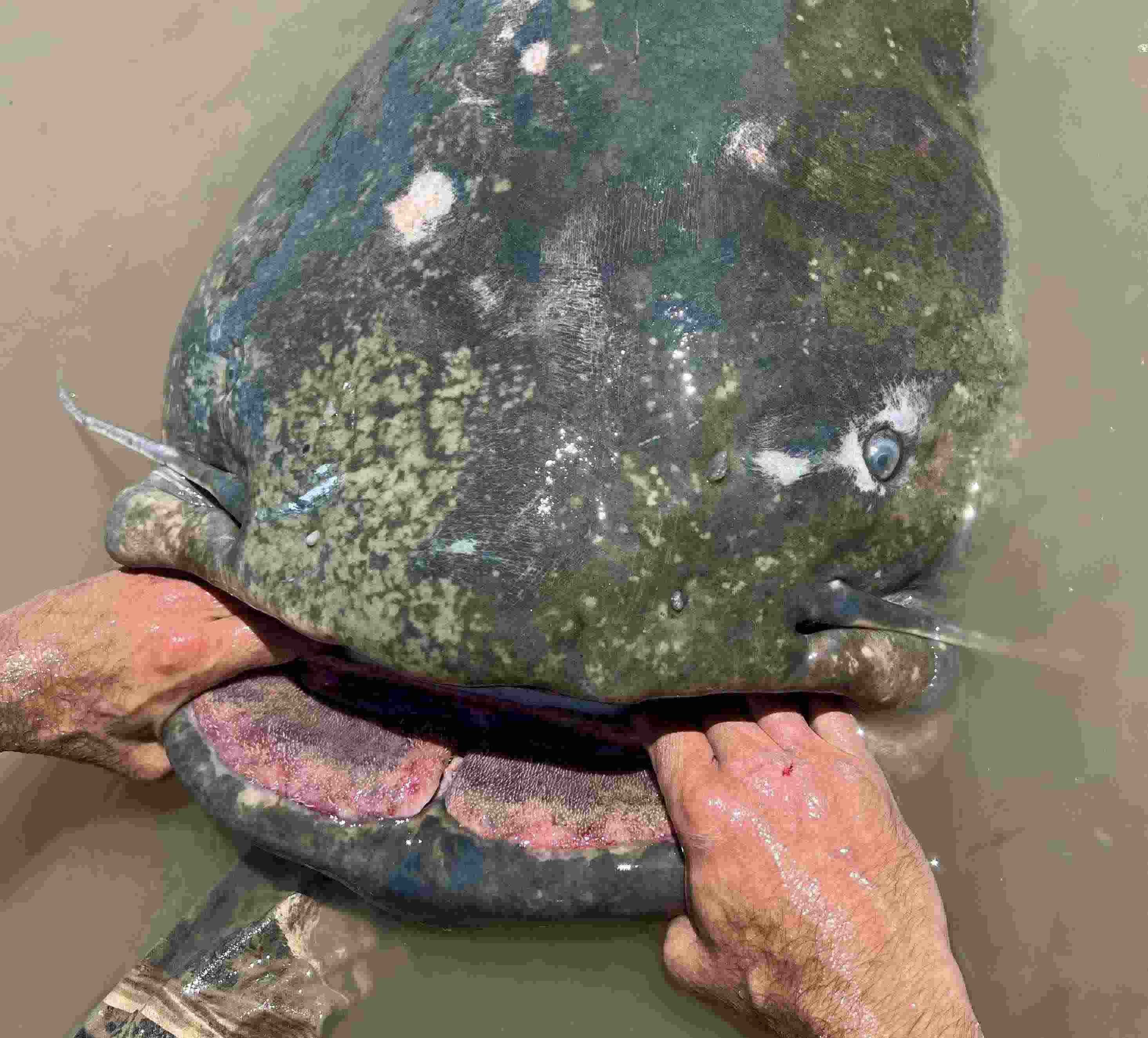 意大利漁民捕獲巨型鯰魚