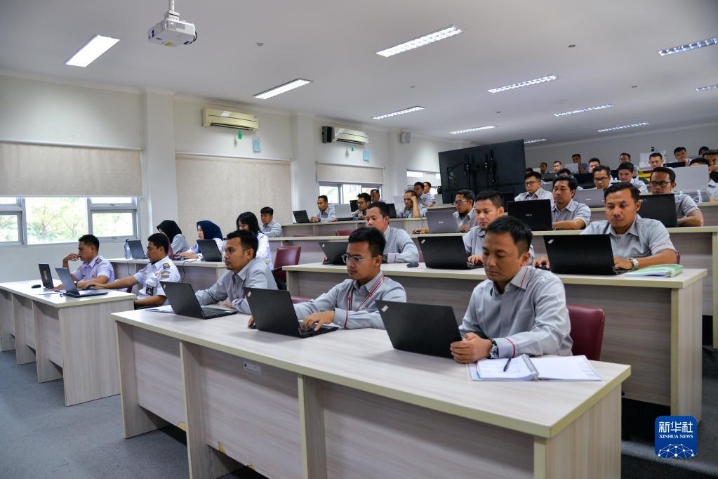 6月7日,在位于印度尼西亞茉莉芬市的印尼鐵路理工學(xué)院,學(xué)員們參加雅萬高鐵應(yīng)急值守人員培訓(xùn)。