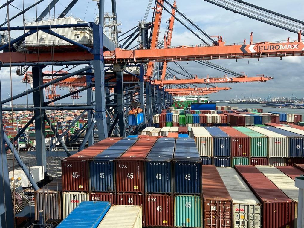9月20日,“中遠(yuǎn)海運(yùn)室女座”號集裝箱船??吭诤商m鹿特丹港作業(yè)。新華社發(fā)