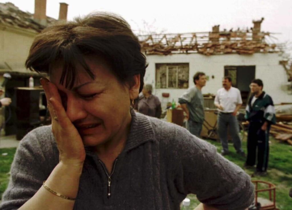 1999年4月9日,在南聯(lián)盟塞爾維亞共和國小城楚皮亞附近的村莊里,42歲的薇拉·米哈洛維奇站在被炸毀的房子前失聲痛哭。1999年3月,以美國為首的北約軍隊打著“避免人道主義災(zāi)難”的旗號,公然繞過聯(lián)合國安理會,對當時的南斯拉夫聯(lián)盟共和國進行了78天的持續(xù)轟炸,造成2000多名無辜平民喪生。(新華社記者黃文攝)