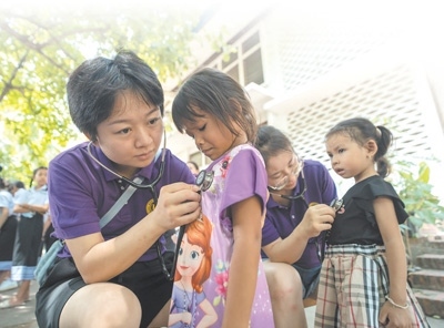 在中國民間組織國際交流促進會的協(xié)助下,“中國—老撾先天性心臟病聯(lián)合篩查和治療”醫(yī)療合作項目團隊6月中下旬在萬象、烏多姆賽省、瑯勃拉邦省等地,對近6000名3歲至18歲的幼兒園孩童和中小學生進行先心病免費篩查,并為部分患兒進行治療。近年來,中國和老撾、柬埔寨等國醫(yī)護工作者攜手護佑生命,守衛(wèi)健康,為當地兒童搭起了一座“心之橋”。“感謝中國醫(yī)生用先進的醫(yī)療技術,為老撾患者帶來了生命的希望?!眳⑴c活動的老撾衛(wèi)生部部長本豐由衷地說。