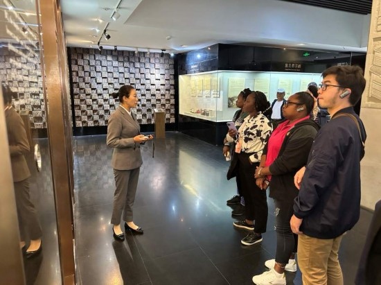 10月23日,在中國酒文化城,2023“一帶一路”媒體合作論壇聯(lián)合采訪團團員認真聆聽講解。本報記者 劉書文攝