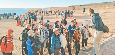 阿巴斯向中國游客介紹當?shù)鼐包c。以上圖片均為本報記者黃培昭攝
