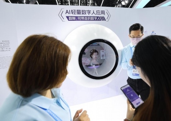 2023年11月23日,參觀者在第二屆全球數(shù)字貿易博覽會上體驗數(shù)字人應用。新華社記者徐昱攝
