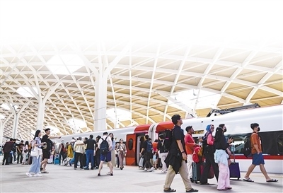 在中印尼共建“一帶一路”合作旗艦項(xiàng)目雅萬高鐵雅加達(dá)哈利姆站,乘客來來往往。