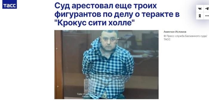據(jù)塔斯社報(bào)道,當(dāng)?shù)貢r(shí)間25日,莫斯科巴斯曼區(qū)法院已批準(zhǔn)對(duì)這3名恐襲事件涉案人員羈押候?qū)?,?月22日。