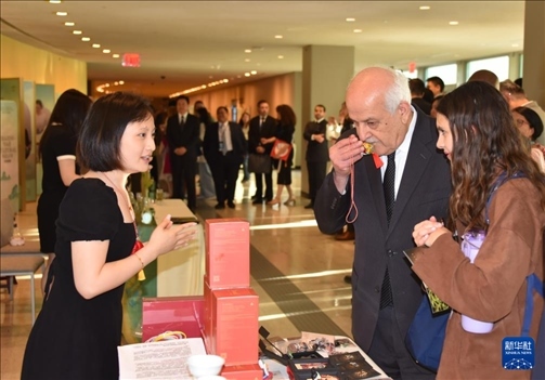 5月21日,在位于紐約的聯(lián)合國(guó)總部,人們參加“茶和天下”國(guó)際茶日展示和慶祝活動(dòng)。新華社記者 王建剛 攝