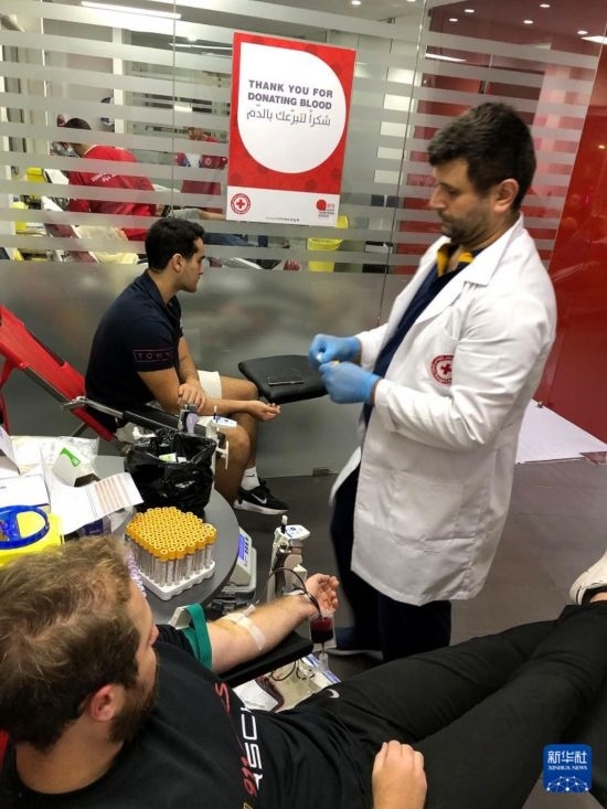 9月17日,在黎巴嫩貝魯特,人們?yōu)閭骱粼O(shè)備爆炸事件傷者獻血。新華社發(fā)(比拉爾·賈維希攝)