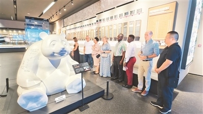 9月4日,在四川省成都市東安湖體育公園主體育場(chǎng),“2024走進(jìn)魅力成都”外國專家調(diào)研團(tuán)成員在參觀成都大運(yùn)會(huì)博物館的陳列。