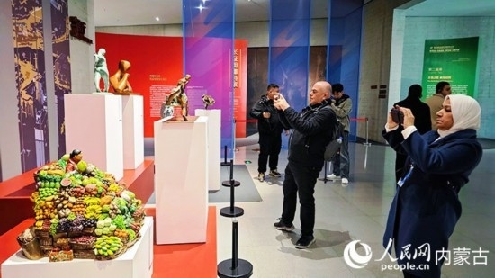 “今天有機會看到了中國的雕塑,充滿了中國的文化特色,對中國也有了全新的理解,回國之后,會將這份全新的理解帶到我的國家和我的生活中。”穿梭在雕塑作品中,摩洛哥記者賽義德·萊哈尼不斷地拍照記錄,展現(xiàn)“三千孤兒入內(nèi)蒙”這段歷史佳話的作品《草原母親》和著色艷麗表現(xiàn)累累碩果的作品《成果》讓他印象深刻,“這次的參觀十分有意義,我會把這些看到的作品深深地留在我的腦海中?!?/p>