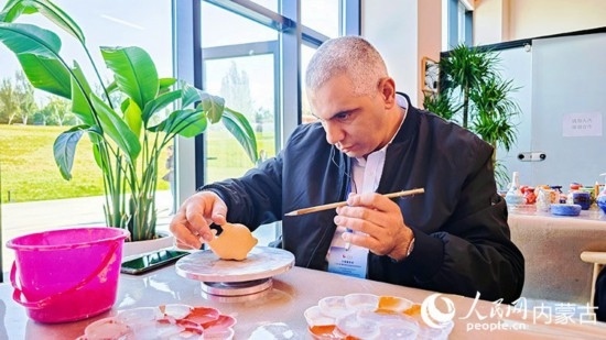 “今天是第一次體驗?zāi)嗨埽诶蠋煹膸椭挛覀冏隽艘粋€碗,我覺得很有意思,我會把它帶回家鄉(xiāng),展示給我的朋友們。”埃及記者馬贊·伊斯蘭姆完成了自己的第一個泥塑作品,成就感滿滿。呼和浩特雕塑藝術(shù)館的體驗之旅也給他留下了深刻的印象,“呼和浩特有著豐富的歷史文化,很高興能有機會體驗了解,我認為這可以吸引很多游客來這里游覽。我們國家也有著豐富的歷史文化,我們兩國有很多共同點,我覺得文化交流能推動我們的合作關(guān)系邁向新的階段?!?/p>