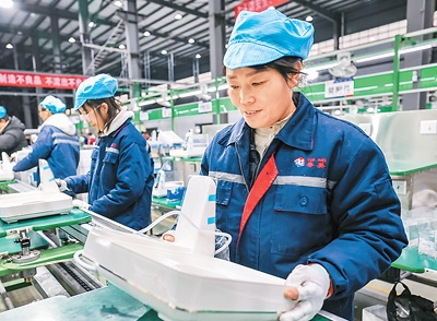 日前,在安徽省馬鞍山市當(dāng)涂經(jīng)開區(qū)一家電子科技公司,工人在趕制首批出口科威特的智能小家電產(chǎn)品。