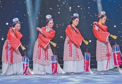 在阿聯(lián)酋華僑華人第十一屆春節(jié)聯(lián)歡晚會(huì)上,華僑華人和當(dāng)?shù)孛癖姽餐堇[中國古代迎春場景。