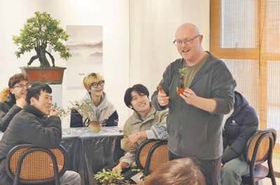 茅檐石壁的傳統(tǒng)民居,造型多變的川派盆景,位于四川崇州市觀勝鎮(zhèn)的嚴(yán)家彎灣,人和、景美、風(fēng)光好。沿著蜿蜒曲折的小徑,走過幾處民居,便來到加拿大盆景師查德·辛克萊(中文名“白熊”)的小院。受外婆影響,白熊自小便對(duì)中國(guó)傳統(tǒng)文化充滿好奇。因熱愛中式盆景,他來到中國(guó)潛心學(xué)習(xí)研究,一晃已過去20多年。
