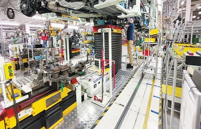 德國一家知名汽車制造商車間內,一個個明黃色的超大“行李箱”正在奔走忙碌。它們自主跟隨車身,時刻與其保持同步,并將發(fā)動機、后橋舉起,對接底盤,完成拼合……
