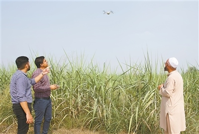 中國—巴基斯坦人工智能智慧農業(yè)實驗室研發(fā)人員運用無人機定期巡檢畫面,通過人工智能分析,實時向農戶反饋作物生長情況。