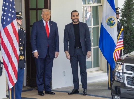 4月14日,美國總統(tǒng)特朗普在華盛頓白宮迎接到訪的薩爾瓦多總統(tǒng)布克爾。特朗普當(dāng)天在白宮會見布克爾時對記者說,伊朗正在拖延與美國的伊核問題談判進(jìn)程,可能面臨美國的“嚴(yán)厲回應(yīng)”。新華社記者胡友松攝