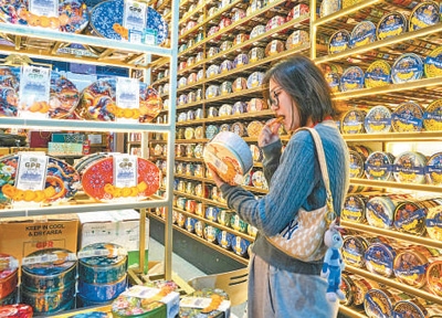 4月13日,第五屆中國國際消費(fèi)品博覽會全球特色消費(fèi)展區(qū),馬來西亞商品琳瑯滿目,吸引觀眾購買。