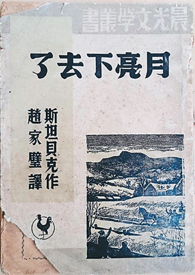 趙家璧在20世紀(jì)30年代就對(duì)美國(guó)文學(xué)很感興趣,讀過(guò)斯坦貝克的《人鼠之間》《憤怒的葡萄》。1942年,他在桂林看到了《月亮下去了》,很快就讀完了,作品中侵略者的橫行霸道,淪陷區(qū)人民的不屈抵抗,讓他覺(jué)得這講的簡(jiǎn)直就是中國(guó)淪陷區(qū)的事,遂對(duì)作品全文進(jìn)行了翻譯。該譯本問(wèn)世后再版多次,影響了一代又一代讀者。