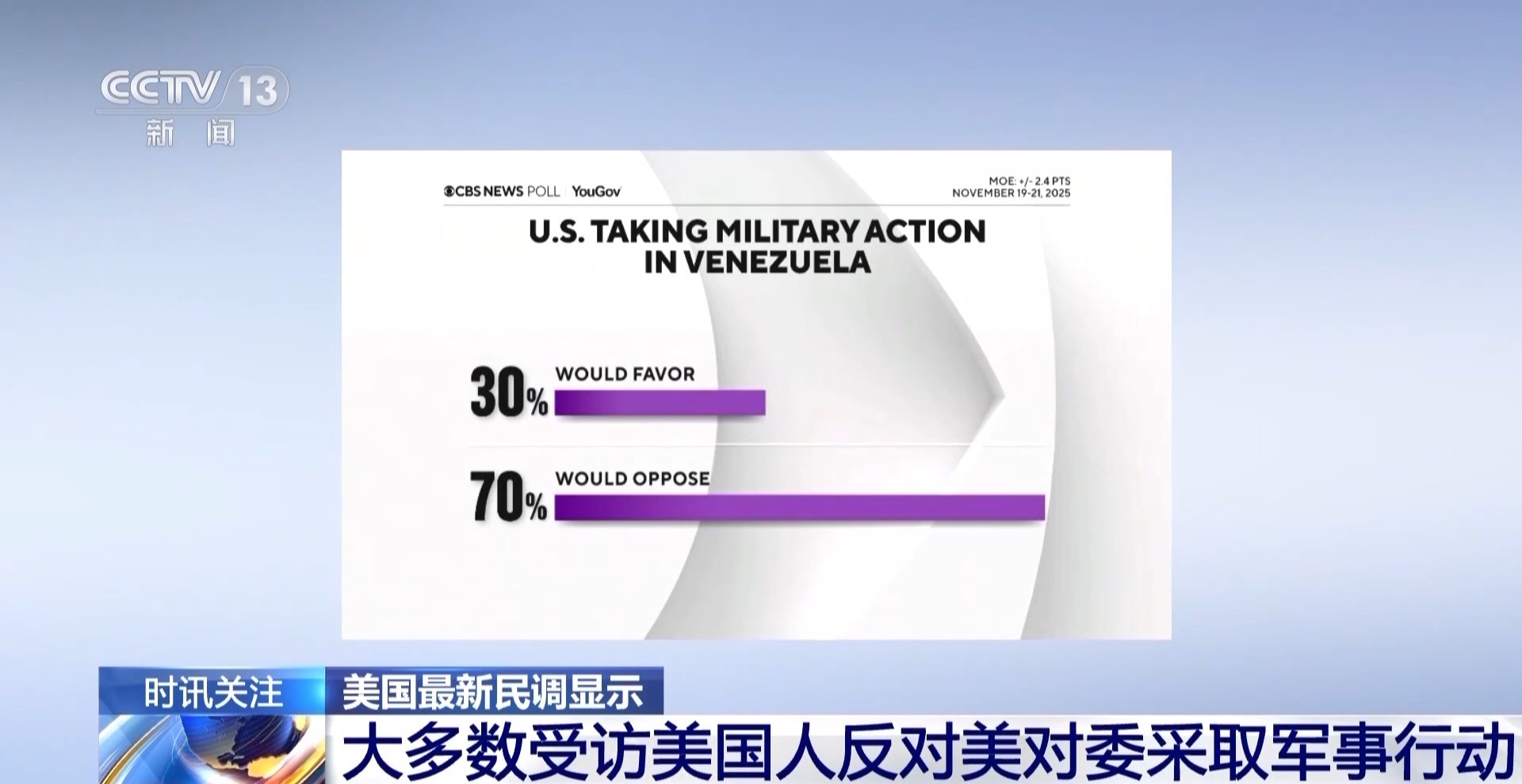 美國23日的一份最新民意調(diào)查結(jié)果顯示,70%的受訪美國人反對美國對委內(nèi)瑞拉采取軍事行動。關(guān)于美國在該地區(qū)針對所謂“販毒船”的攻擊行動,75%的受訪美國人認為美國應出示證據(jù),證明其攻擊的船只確實載有毒品。