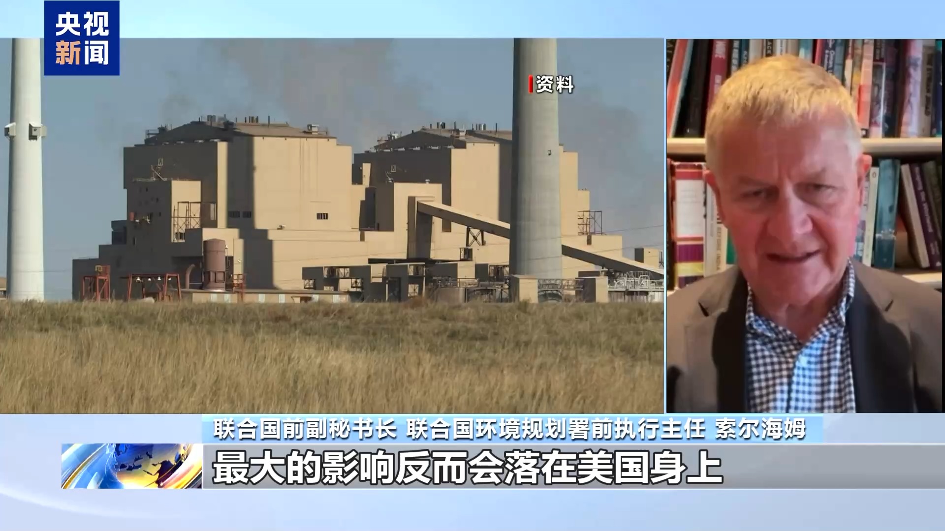 聯(lián)合國前副秘書長 聯(lián)合國環(huán)境規(guī)劃署前執(zhí)行主任 索爾海姆:我認(rèn)為,諷刺的是最大的影響反而會落在美國身上,因?yàn)槊绹F(xiàn)在正在削減在太陽能、風(fēng)能和電動(dòng)汽車方面的投入。
