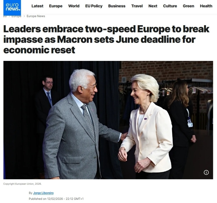 《政治報(bào)》網(wǎng)站歐洲版的報(bào)道評論稱,歐盟一直以其成員國團(tuán)結(jié)一致向前邁進(jìn)而自豪,那個(gè)時(shí)代已經(jīng)結(jié)束了。2月12日在比利時(shí)舉行的會議上,法國、德國、意大利等多國領(lǐng)導(dǎo)人支持,最早將于下個(gè)月的歐洲理事會上形成一項(xiàng)計(jì)劃,以簽署組成更小團(tuán)體的倡議。各國政府表示,由于歐洲的許多想法陷入優(yōu)柔寡斷和不和諧之中,歐洲的競爭優(yōu)勢正在逐漸消失,因此他們感到一種緊迫感。