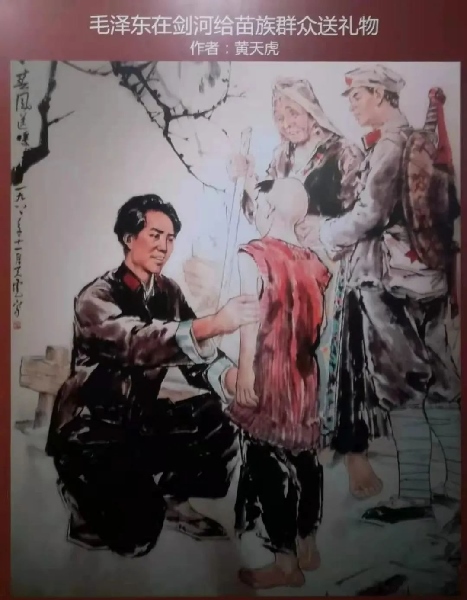 “當我等行經(jīng)劍河縣附近之某村落時,見路邊有一老婦與一童子,身穿單衣,倒于路邊,氣息尚存……正詢問間,赤軍領袖毛澤東至,告以老婦所言。當時毛即時從身上脫下毛線衣一件及行李中取出被單一條,授予老婦,并命人給以白米一斗。老婦則連連道謝含笑而去。”