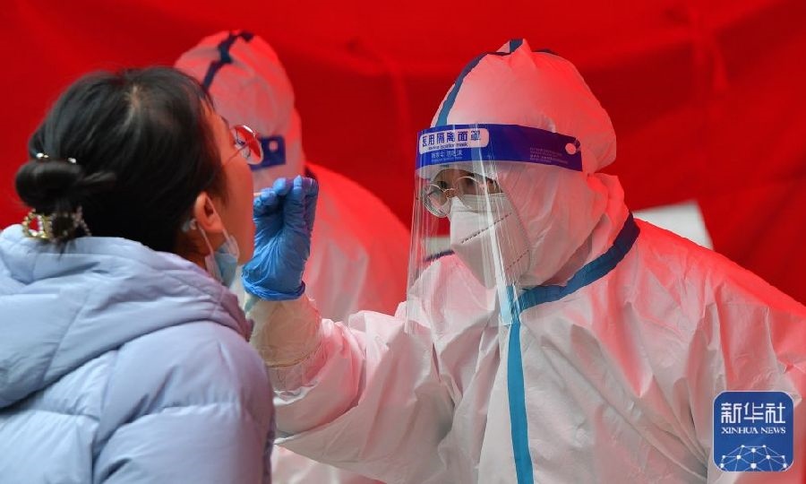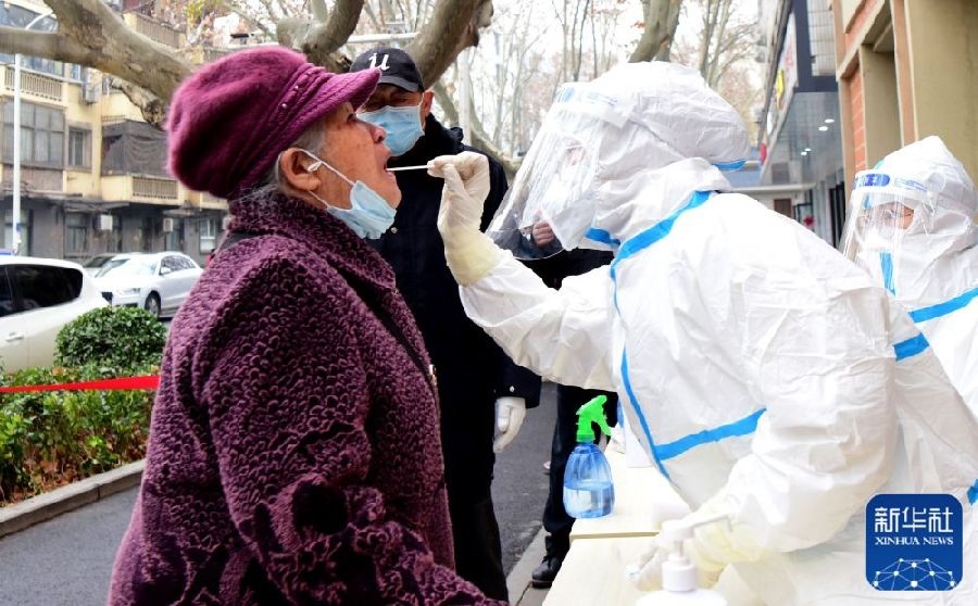 1月8日,在鄭州市高新區(qū)楓楊辦事處譽(yù)園核酸檢測點,醫(yī)務(wù)人員為市民進(jìn)行核酸檢測取樣。新華社記者張浩然攝
