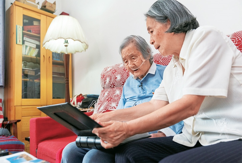 圖為2021年6月23日,在北京的家中,瞿獨(dú)伊(左)和女兒李曉云向記者展示家人的相冊。 新華社記者 才揚(yáng)/攝
