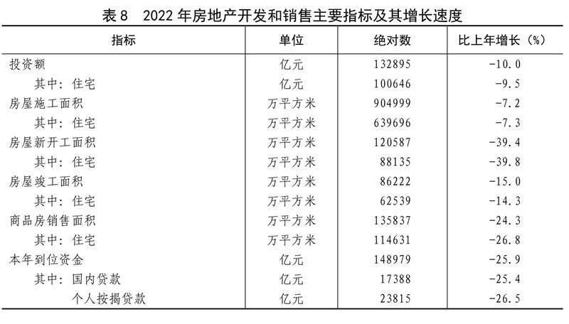 全年房地產(chǎn)開發(fā)投資132895億元,比上年下降10.0%。其中住宅投資100646億元,下降9.5%;辦公樓投資5291億元,下降11.4%;商業(yè)營業(yè)用房投資10647億元,下降14.4%。年末商品房待售面積56366萬平方米,比上年末增加5343萬平方米,其中商品住宅待售面積26947萬平方米,增加4186萬平方米。