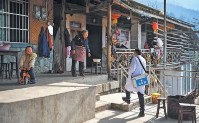 四川省北川羌族自治縣曲山鎮(zhèn)石椅村,村醫(yī)入戶(hù)走訪(fǎng)重點(diǎn)人群,提供醫(yī)療服務(wù)。 新華社記者 張超群攝