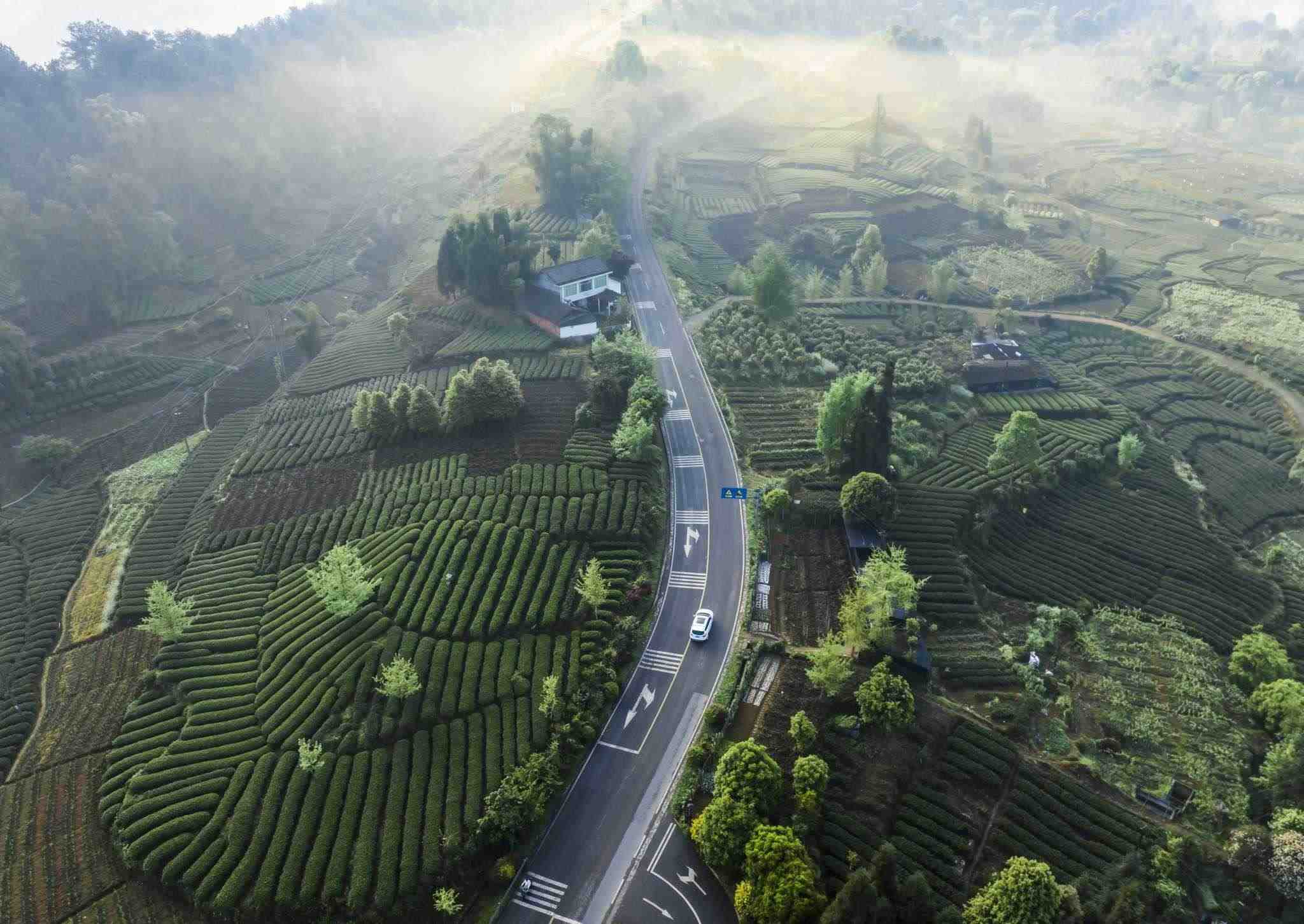 成都:鄉(xiāng)村薄霧輕旋 青山蒼翠