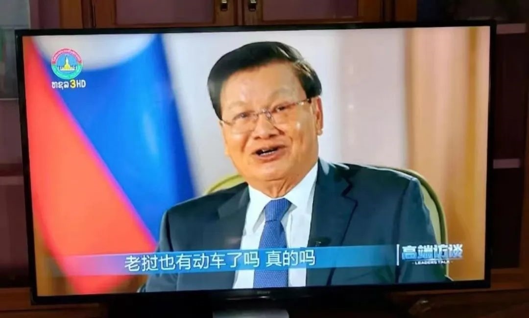 △專訪老撾國家主席通倫的節(jié)目在老撾國家電視臺播出