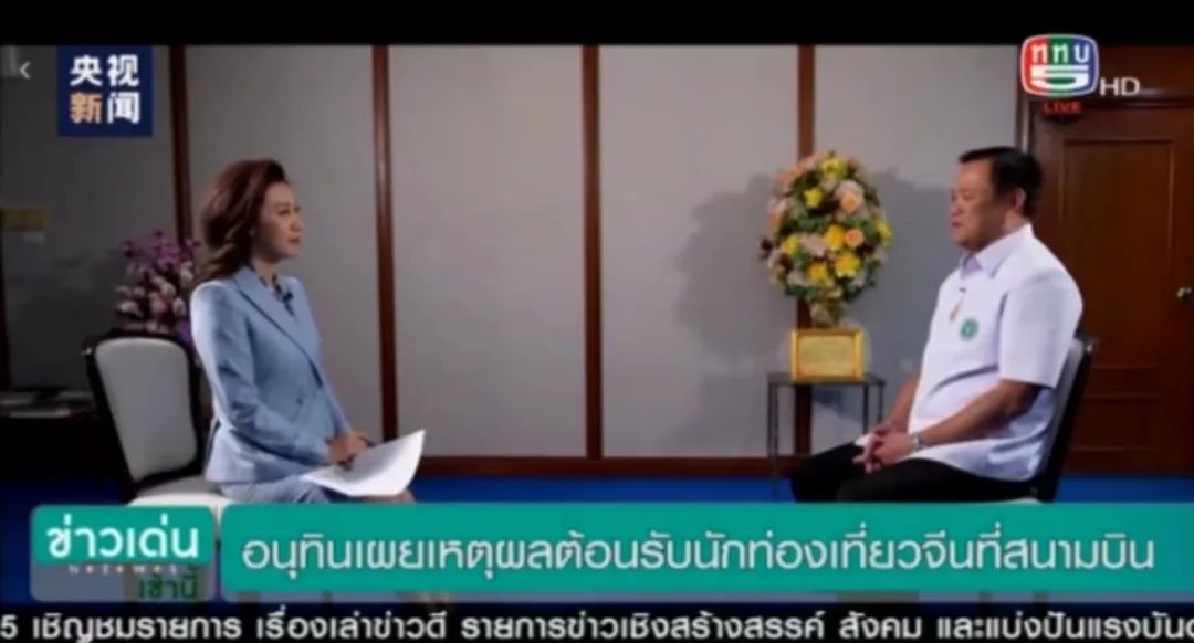 △專訪泰國副總理兼衛(wèi)生部長阿努廷的節(jié)目在泰國播出