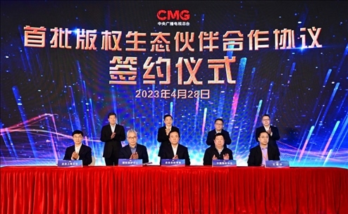 4月28日,以“共融共生 共創(chuàng)未來”為主題的中央廣播電視總臺(tái)首屆版權(quán)生態(tài)合作大會(huì)在上海舉行。中宣部副部長(zhǎng)、中央廣播電視總臺(tái)臺(tái)長(zhǎng)慎海雄,上海市委常委、宣傳部部長(zhǎng)趙嘉鳴出席,并與中國版權(quán)協(xié)會(huì)理事長(zhǎng)閻曉宏、總臺(tái)編務(wù)會(huì)議成員彭健明共同見證總臺(tái)首批版權(quán)生態(tài)伙伴簽約。
