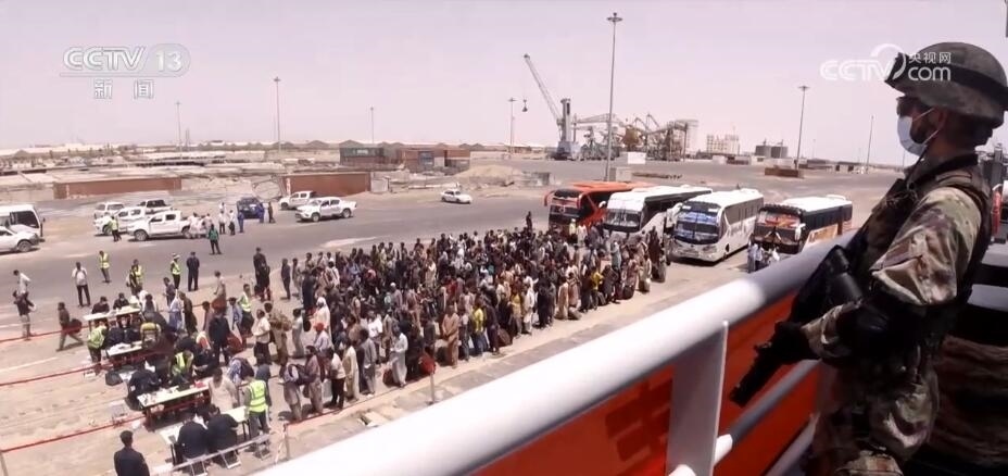 靠泊蘇丹港后,微山湖艦快速放下舷梯,官兵立即登上碼頭開展接收撤離人員準(zhǔn)備工作。隨后搭載撤離人員的大巴車隊(duì)抵達(dá)碼頭,人員登記、安檢、登艦等工作緊張有序展開。