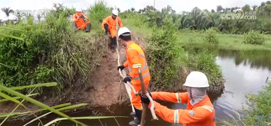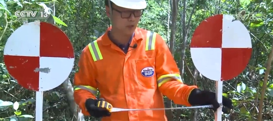 在勘探過程中,工作人員會用不同顏色的飄帶進(jìn)行標(biāo)記,這種紅色的飄帶是代表保護(hù)樹種,禁止砍伐,藍(lán)色飄帶則指示著項(xiàng)目的路線。這些飄帶全都是用可降解材料制成的,在勘探任務(wù)結(jié)束后,還會有專門的小組對工區(qū)進(jìn)行垃圾回收和雨林恢復(fù)工作。目前,項(xiàng)目已經(jīng)完成了70%的工作量,預(yù)計(jì)7月中旬可以順利竣工。一年多來,項(xiàng)目多次接受當(dāng)?shù)丨h(huán)保等部門的各項(xiàng)檢查,每一次審計(jì)和檢測都收到了相關(guān)方非常高的評價(jià)。