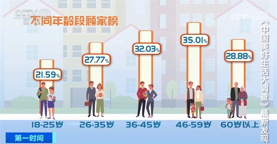 大調查發(fā)現(xiàn),46—59歲的中年人休閑時間陪伴家人的比例最高,其次是36—45歲人群。這兩個年齡段的人群,大都上有老下有小,家庭責任最大,一家人團團圓圓才是最美好的生活。